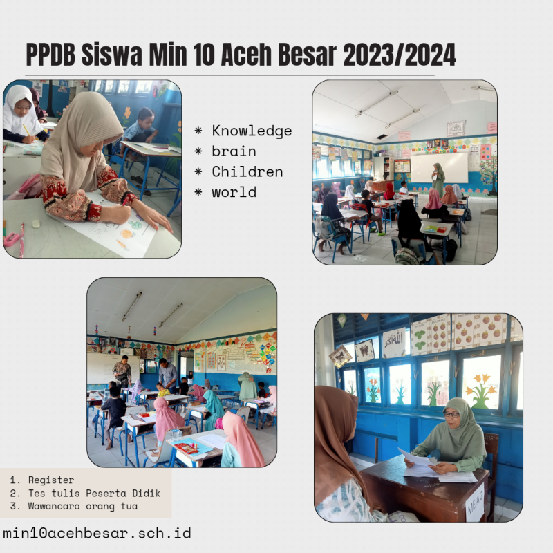 Pendaftaran Peserta Didik Baru tahun pelajaran 2023/2024 di MIN 10 Aceh Besar mulai dibuka pada hari Senin (27/3/2023).