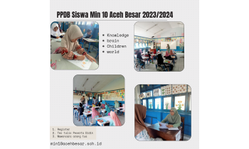 Pendaftaran Peserta Didik Baru tahun pelajaran 2023/2024 di MIN 10 Aceh Besar mulai dibuka pada hari Senin (27/3/2023). Tahapan Pendaftaran PPDB diawali dengan Registrasi pada tanggal 27 Maret - 13 Mei 2023. Tahapan selanjutnya yaitu tes tulis Peserta Didik dan wawancara orang...